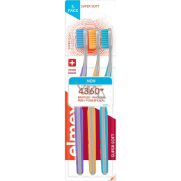 Elmex zubní kartáček Super Soft zaručuje jemné vyčištění těžko dostupných míst díky ultra měkkým 0,13 mm vláknům. Odstraňuje zubní plak, čistí povrchové skvrny a chrání před zubním kazem, přičemž je stále šetrný k dásním.