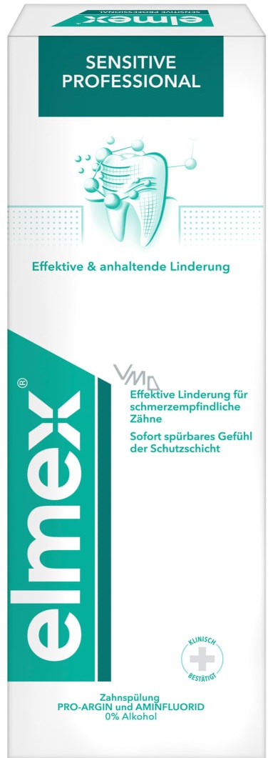 Jemná ústní voda bez alkoholu Elmex Sensitive poskytuje zvýšenou ochranu proti zvýšené citlivosti zubů a vzniku kazů v oblasti zubních krčků. Účinná látka aminfluorid posiluje obranyschopnost skloviny zejména v místech, do kterých se zubní kartáček nedostane, a zpevňuje i již demineralizovanou sklovinu.