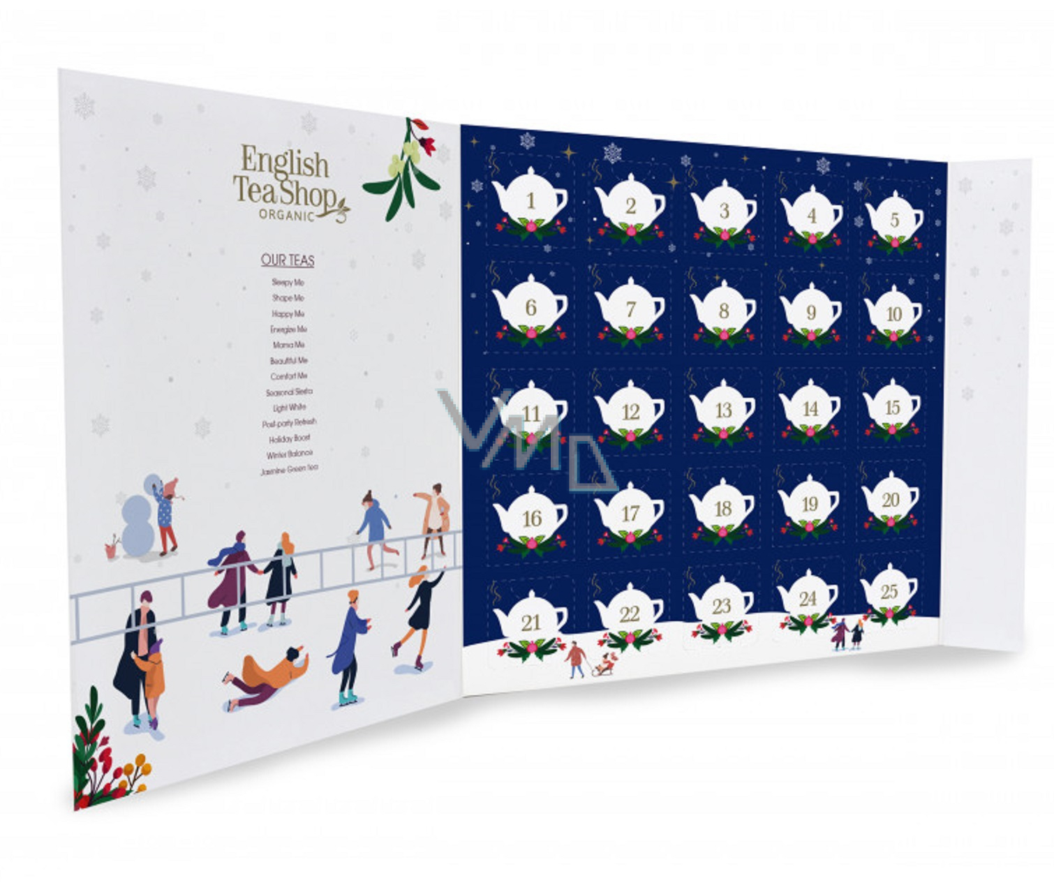 English Tea Shop Bio Adventskalender in Form eines Buches Weihnachtsnachtblau, 25 Stück lose Teepyramiden, 13 Geschmacksrichtungen, 50 g, Geschenkset