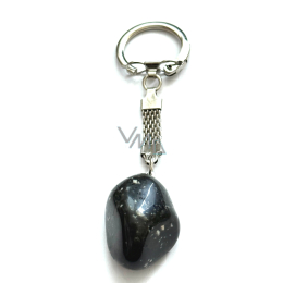 Der Anhänger ist aus getrommeltem Stein gefertigt und mit hochwertigen tschechischen Metallteilen verbunden - die Schleife ist aus versilbertem Tombak, ohne Nickelanteil.
