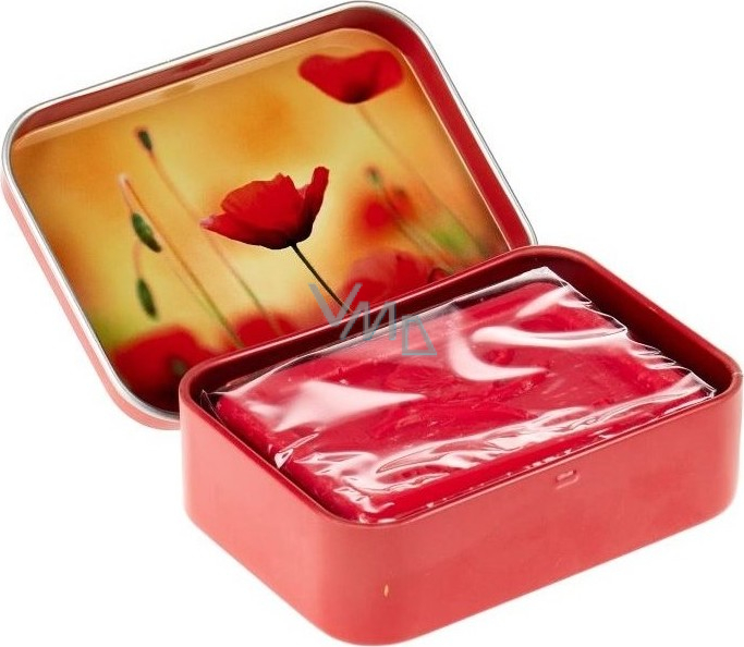 Voňavé marseillské mýdlo v praktické plechové krabičce. Obsažené bambucké máslo zvláční vaši pokožku, zatímco ji šetrně čistí a provoní ji jemnou vůní vlčích máků po celý den. Mýdlo je uložené v praktické plechové krabičce s motivem.