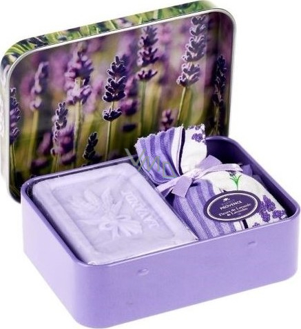 - plechová krabička s obrázkem levandule