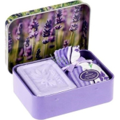 Esprit Provence Lavendel Toilettenseife 60 g + Lavendelduftbeutel + Blechdose mit einem Bild von Lavendel, Kosmetikset für Damen