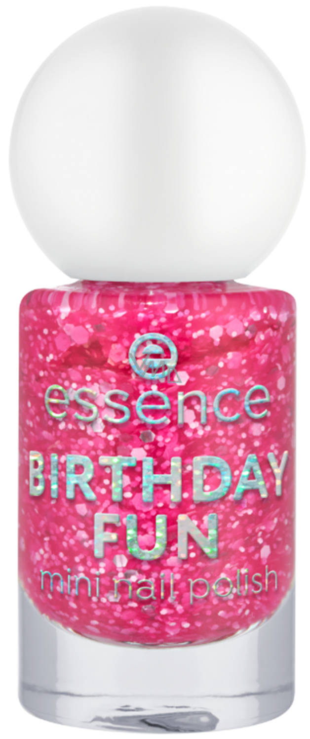 Mit dem mini Nagellack Birthday Fun von essence erleben Sie jeden Tag großen Spaß. Der leichte schimmernde Effekt in Rosa verleiht Ihren Nägeln ein festliches Aussehen. Der praktische Nagellack kann entweder allein oder als Top Coat über Ihrer Lieblingsfarbe aufgetragen werden. Egal, ob Sie Ihren besonderen Tag feiern oder einen Freund überraschen möchten, mit dem praktischen Nagellack können Sie jeden Tag wie eine Feier erleben. Sie können ihn entweder alleine auftragen oder als oberen Überzug auf Ihre Lieblingsfarbe verwenden, um extra Glanz zu erzielen.