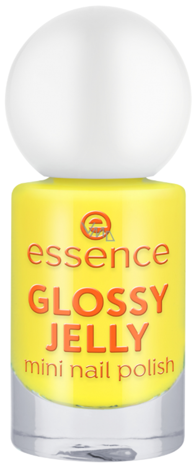 Mini Nagellack Glossy Jelly von essence bringt Ihren Nägeln großartigen Glanz und einen strahlend gelben Farbton. Seine verspielte Verpackung mit rundem Verschluss enthält eine gelartige, halbtransparente Textur, die sehr gut aufbaubar ist. Die Farbe kann mit mehreren Schichten perfekt geschichtet werden, um den gewünschten Grad an Intensität zu erreichen. Mit einem weißen Unterlack kann das Ergebnis noch verbessert werden. Das verspielte Design mit rundem Verschluss macht diesen Nagellack zu einem echten Schmuckstück in Ihrer Sammlung. Ideal für einen frischen Look, der alle Blicke auf sich zieht.