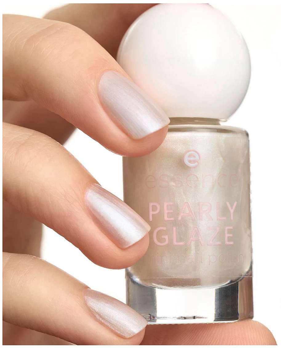 Verleihen Sie Ihren Nägeln mit dem essence mini Nagellack PEARLY GLAZE 16 einen sanften und eleganten Glanz. Dieser perlweiße Farbton mit ultra-feinen glitzernden Partikeln erzeugt einen strahlenden, leicht „gläsernen“ Effekt, der das Licht wunderschön reflektiert. Die glatte flüssige Textur lässt sich leicht auftragen und deckt gleichmäßig. Eine Schicht verleiht einen sanften pearly Glanz, während durch Schichten ein ausgeprägterer, strahlenderer Effekt erzielt werden kann.