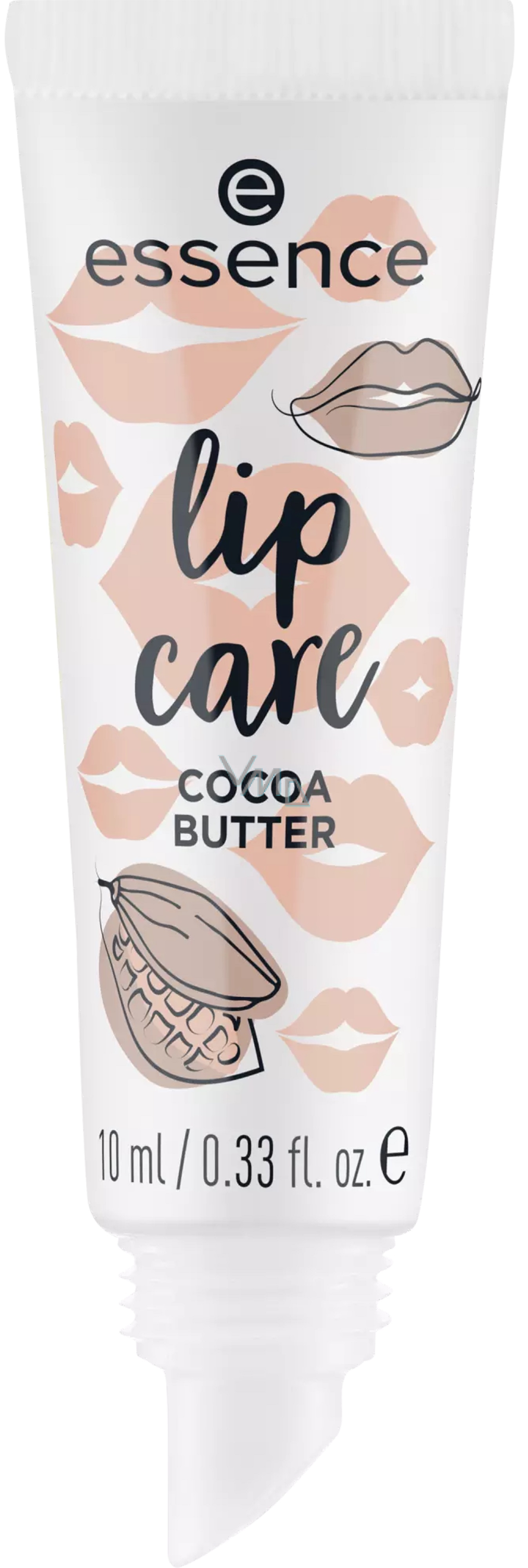 Essence péče na rty Cocoa Butter s kakaovým máslem, bambuckým máslem a vitamínem E intenzivně vyživuje rty a dodává jim ultra hebkost. Toto luxusní máslo na rty s jemnou kakaovou vůní je díky praktické tubě a zkosenému aplikátoru ideální na cesty.