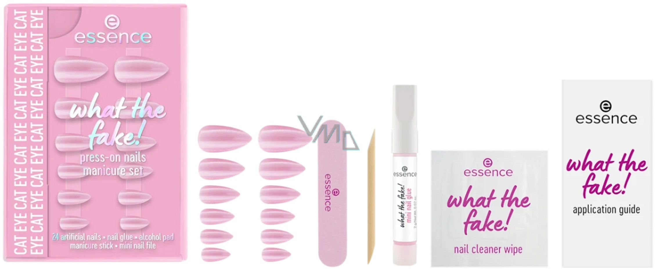 Künstliche Nägel What The Fake! 02 Cat Eye von essence bieten ein elegantes Design in einem zarten, glänzenden Rosaton, der an eine professionelle Maniküre erinnert. Die weichen, mandelförmigen Nägel passen sich bequem den natürlichen Nägeln an und sorgen für einen angenehmen Tragekomfort den ganzen Tag. Das Set enthält alles Nötige – 24 Nägel in verschiedenen Größen, Kleber, Maniküre-Stäbchen, Mini-Feile und Kosmetiktücher, sodass Sie innerhalb von wenigen Minuten eine natürlich aussehende und elegante Maniküre kreieren können. Dank der hochwertigen Gelstruktur wirken die Nägel sehr natürlich und raffiniert.
