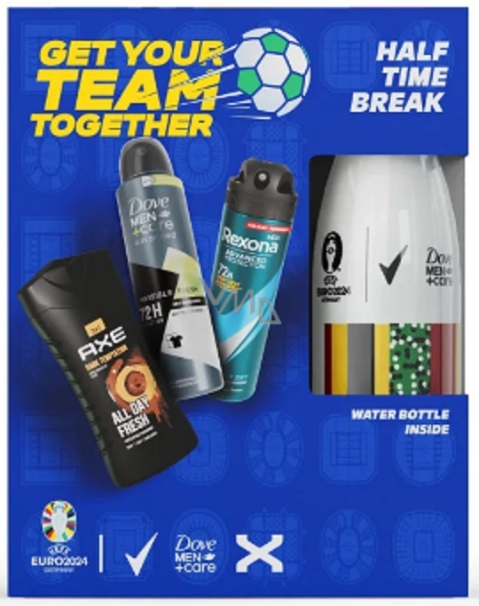 S touto pánskou kosmetickou sadou si můžete připomenout mimořádnou událost, mistrovství Evropy EURO 2024, na každém kroku. Produkty podtrhnou vaši mužskou energii a obklopí vás ikonickými vůněmi, jako je antiperspirant Rexona Advanced Protection Cobalt Dry a antiperspirant Dove Men +Care Invisible Fresh. Chrání také před potem a zápachem po celý den. Sprchový gel Axe Dark Temptation zbaví vaši pokožku všech nečistot a pečuje o ni do hloubky. Součástí kompletní sady je také praktická a stylová kosmetická taštička s logem EURO 2024. Celá sada je dodávána v krabičce s motivy šampionátu, takže ji můžete darovat i svým blízkým.