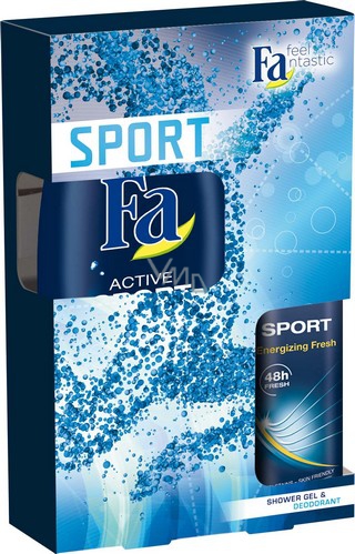 Objevte osvěžující sprchový gel Fa Active Sport! Pečující receptura povzbudí tělo i mysl a napomáhá k doplnění vaší energie - při každém sprchování. Pro tělo i vlasy. Vůči pokožce pH neutrální. Dermatologicky ověřená snášenlivost s pokožkou.