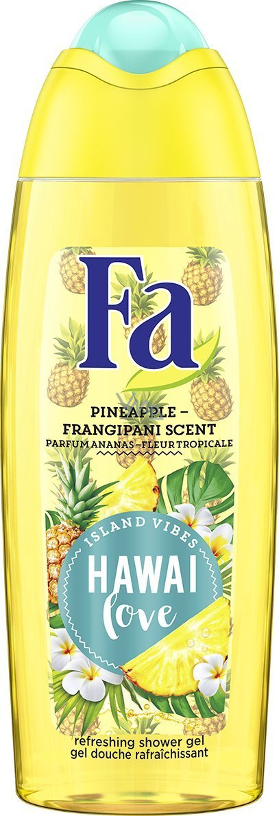 Sprchový gel Fa Island Vibes Hawaii Love s osvěžující plážovou vůní ananasu a plumérie. Jemné složení vytváří bohatou pěnu a zanechává pocit příjemně hebké pokožky. Vůči pokožce pH neutrální. Dermatologicky testována snášenlivost s pokožkou.