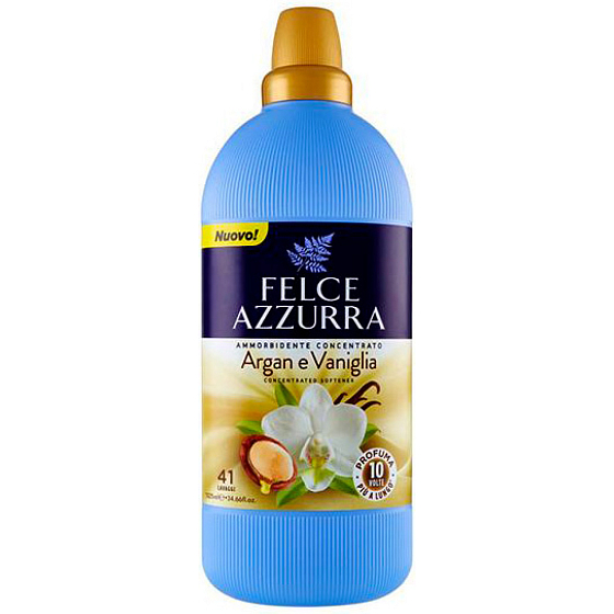 Probieren Sie den konzentrierten Weichspüler Felce Azzurra und gönnen Sie Ihrer Wäsche einen Duft, der 10-mal länger hält (im Vergleich zu herkömmlichem Weichspüler). Diese einzigartige Formel verleiht Ihrer Wäsche eine unwiderstehliche Weichheit in intensivem Duft von Vanille und Argan, für langanhaltenden Duft und Weichheit der Wäsche. Verlängerte Wirkung. Dermatologisch getestet.