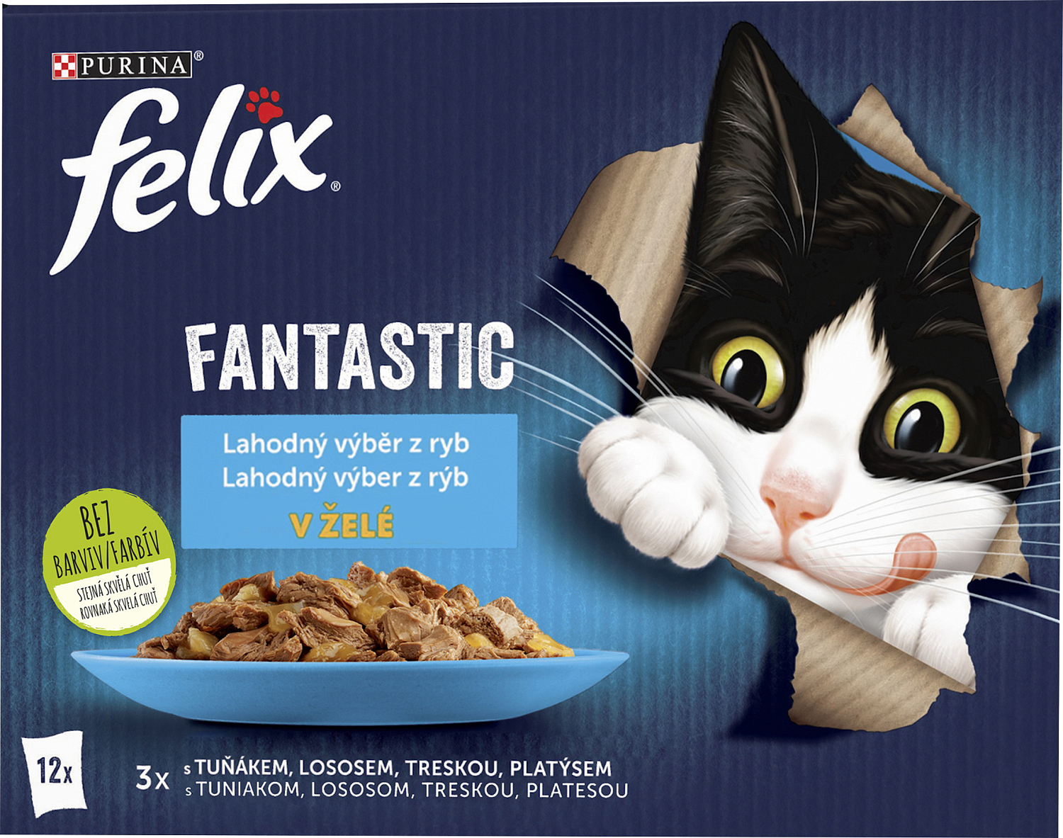 Felix Fantastic Auswahl aus Fischen bietet eine Auswahl an köstlichem Futter, das zweifellos das Verlangen Ihrer Katze nach Vielfalt befriedigt. Jeder Beutel enthält zarte Stücke Fischfleisch, umhüllt von schmackhaftem und duftendem Gelee. Darüber hinaus ist dieses Futter eine Quelle essenzieller Omega-6-Fettsäuren, Mineralstoffe und Vitamine. FELIX® Fantastic Futter sieht so unwiderstehlich aus, riecht so und schmeckt so, wie das Essen, das Sie selbst zubereitet hätten. Jede Rezeptur enthält zarte Stücke, die mit Gemüse in saftigem Gelee serviert werden, damit Ihre Katze richtig in das schmackhafte Futter beißen kann. Sie schmecken wirklich so gut, wie sie aussehen!