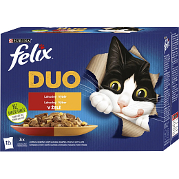 Felix Fantastic Duo köstliche Auswahl bietet eine Auswahl an schmackhaftem Futter für Ihre Katzen. Jedes Rezept, hergestellt aus hochwertigen Zutaten, enthält zarte Stücke, die zwei unwiderstehliche Geschmäcker in Gelee kombinieren.