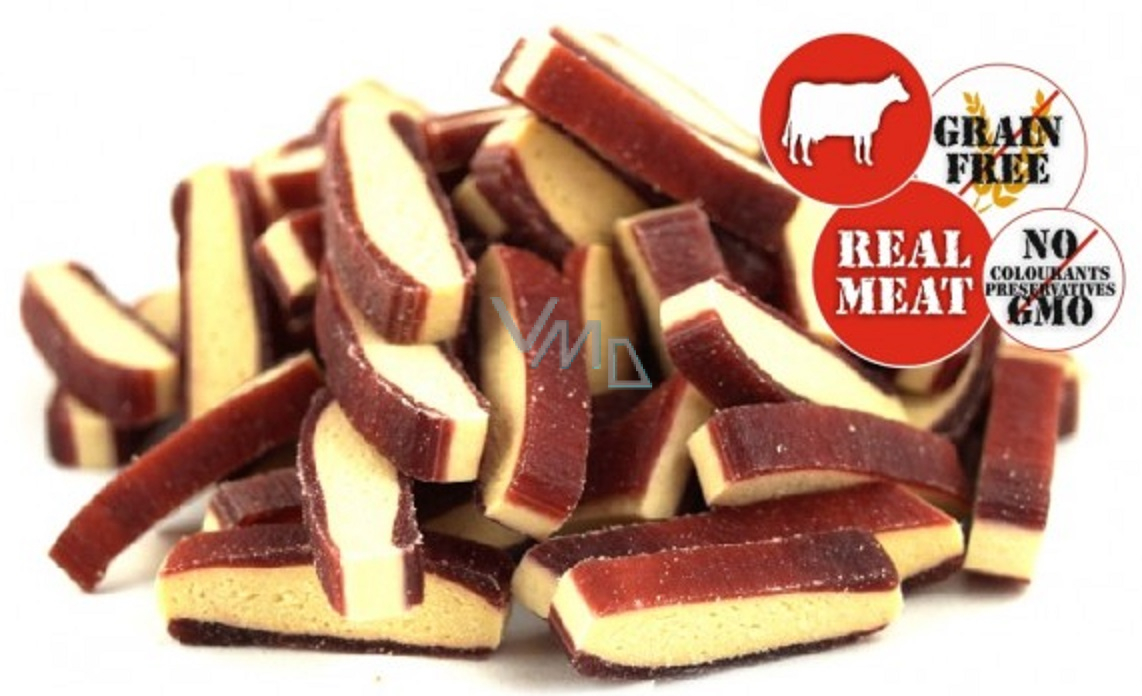 Hovězí pochoutka pro psy, sušená horkým vzduchem. Slouží jako odměna při hře, výcviku nebo jako doplněk stravy při cestách.