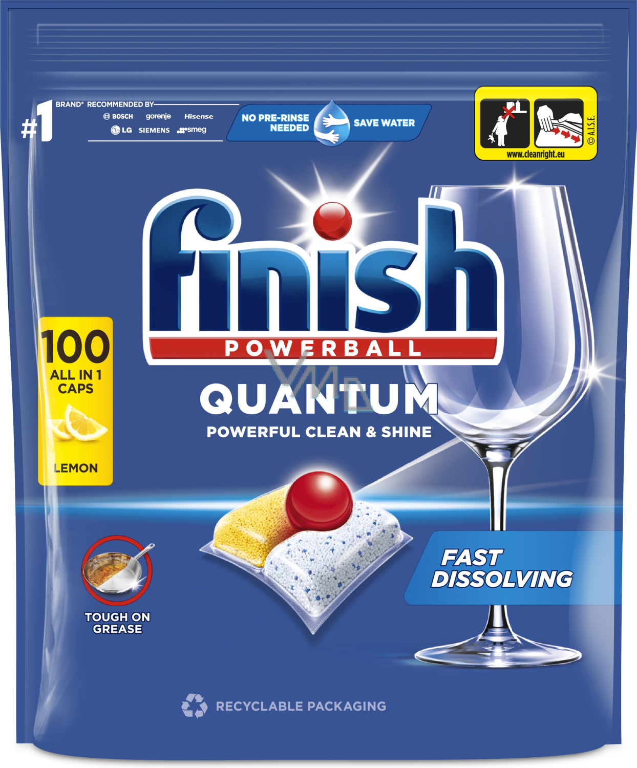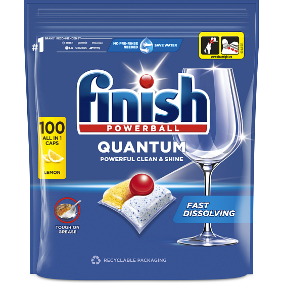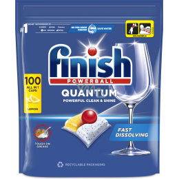 Finish Quantum All in 1 Lemon Sparkle Geschirrspültabs 100 Stück sind hochwirksame Gelkapseln, die für die perfekte Reinigung und den Glanz Ihres Geschirrs entwickelt wurden. Dank der dreikammerigen Zusammensetzung entfernen sie auch eingetrocknete Verschmutzungen und Fett ohne vorheriges vorspülen. Ihre Zusammensetzung schützt auch Gläser vor Korrosion und verhindert die Ablagerung von Kalkablagerungen in der Spülmaschine. Die Tabs sind biologisch abbaubar und in Wasser löslich, was die ökologischen Eigenschaften sicherstellt.