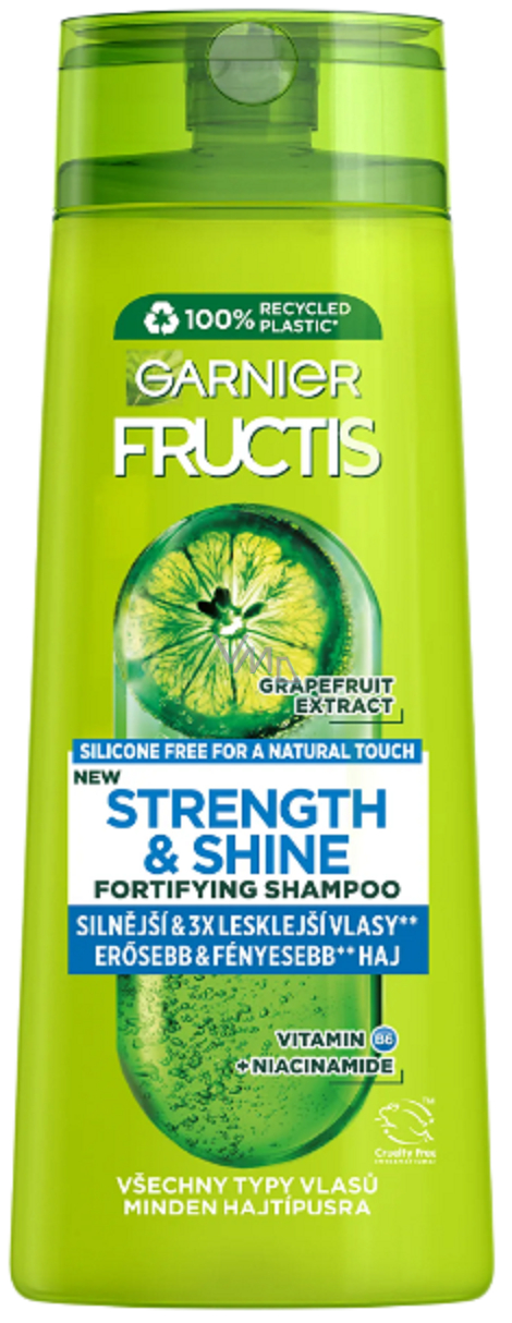 Dodejte svým vlasům sílu, vitalitu a oslnivý lesk s Garnier Fructis Strength & Shine posilujícím šamponem. Speciální složení s vitaminem B6 a niacinamidem posiluje vlasové vlákno od kořínků po konečky a zároveň pomáhá odstranit nadbytečnou mastnotu.