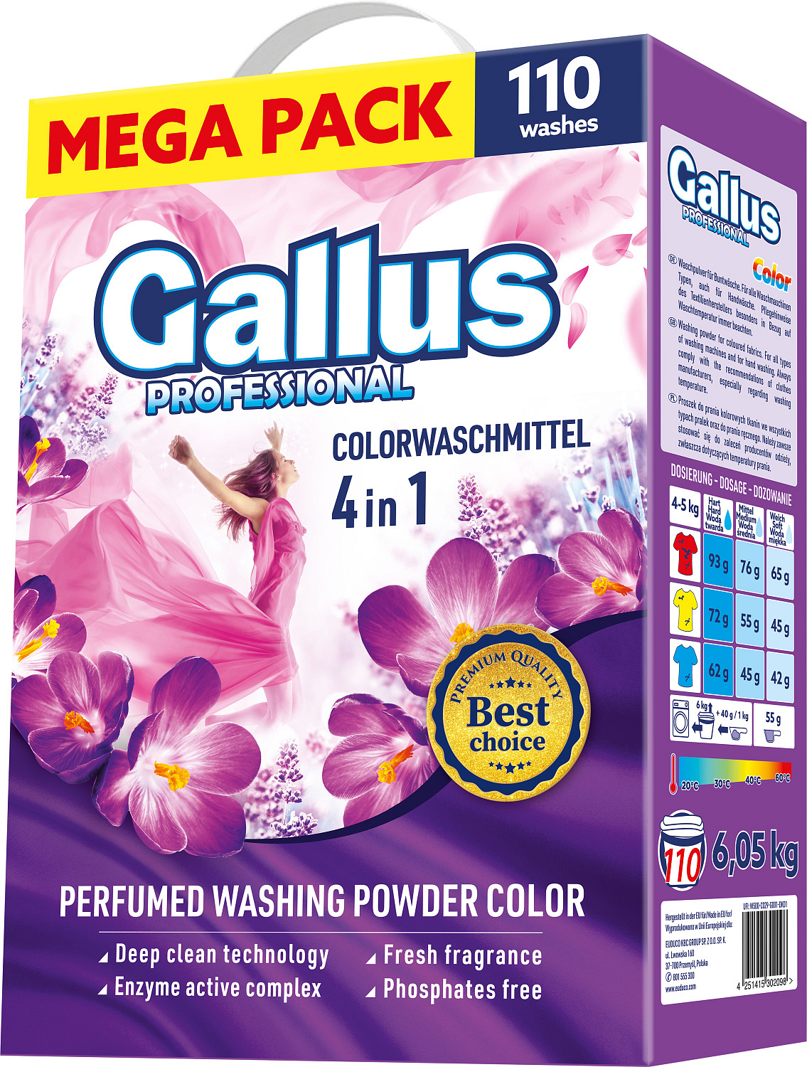 Universelles Waschpulver mit einem ausgezeichneten Preis/Leistungs-Verhältnis. Es ist geeignet für farbige Wäsche. Es entfernt effektiv Flecken und Schmutz aus dem Gewebe bei klassischen Temperaturen von 30 bis 60 °C. Es ist für alle Arten von Waschmaschinen geeignet und schützt vor der Bildung von Kalkablagerungen.
