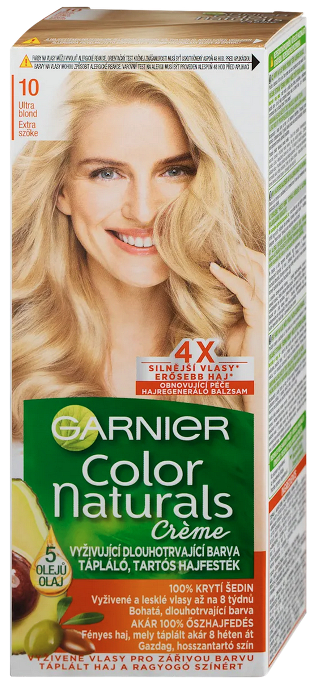 Garnier Color Naturals ist eine langanhaltende, intensiv pflegende Haarfarbe mit natürlichem Olivenöl, welches tief in die Haarstruktur eindringt und somit während des Färbens gleichzeitig die Haare pflegt. Die nährenden Inhaltsstoffe des Produkts bestehen aus 5 wohltuenden Ölen (Olive, Avocado, Sheabutter, Preiselbeere und Argan), die die Oberfläche des Haars glatt machen und eine schützende Schicht bilden. Die Zusammensetzung der Farbcreme füllt das Haar mit langanhaltender, intensiver Farbe und deckt graue Haare perfekt ab. Die abschließende Pflege mit 5 Ölen verleiht gefärbtem Haar Glanz und ein vitales Aussehen.