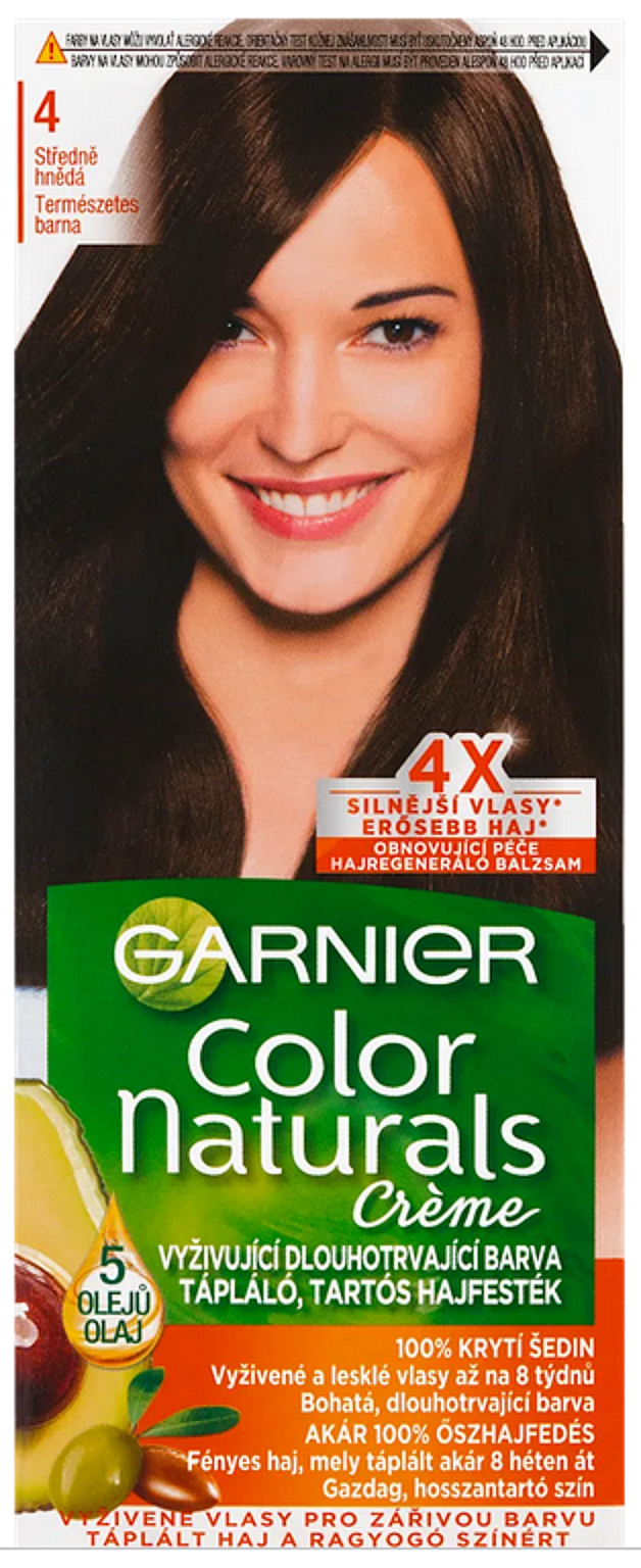 Garnier Color Naturals ist eine langanhaltende, intensiv pflegende Haarfarbe mit natürlichem Olivenöl, das tief in die Haarstruktur eindringt und während des Färbens gleichzeitig das Haar pflegt. Die Formel, die mit ölextrakten aus Oliven, Avocado und Sheabutter angereichert ist, die das Haar intensiv nähren, bildet eine schützende Schicht und glättet die Oberfläche des Haars. Die neue abschließende Pflege ist jetzt mit 2x mehr pflegenden Ölen angereichert.