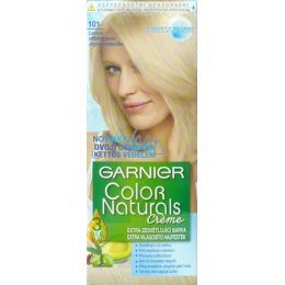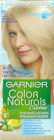 Toužili jste vždy po nádherných blonďatých vlasech, kterými oslníte své okolí? Je na čase si tento sen splnit. Zesvětlující barva Garnier Color Naturals Creme 101 Ledově stříbrná blond dokáže vaše vlasy přirozeně zesvětlit až o 5 odstínů a současně jim prostřednictvím olejové péče poskytne potřebnou výživu a ochranu před poškozením. S barvou Garnier se díky inovativní technologii a speciálnímu složení barvicího krému už nikdy nemusíte bát, že se po barvení proměníte v nepovedené žluté kuřátko. Studené pigmenty obsažené v barvě Garnier totiž perfektně eliminují nežádoucí oranžové a žluté odlesky. Krémová konzistence barvy proniká snadno a hluboko do vlasových vláken a zajistí tak dokonalé obarvení. Závěrečná vlasová péče je obohacena o přírodní oleje z oliv, avokáda a karité. Výsledkem je tak sytá, zářivá a jasná blond. Vlasy ošetřené barvou Garnier Color Naturals vám vydrží krásně lesklé, na dotek jemné a vyživené až po 8 týdnů.