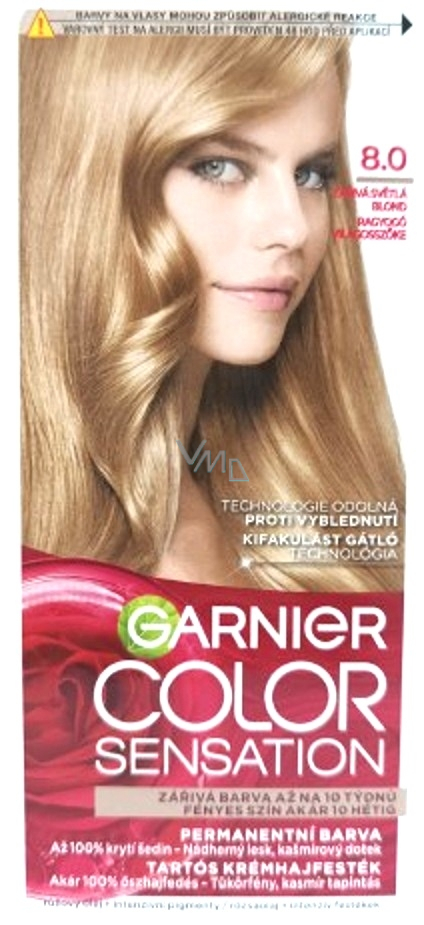 Garnier Color Sensation barva na vlasy s jemnou květinovou vůní 100% kryje šediny a vlasům dodá perleťový lesk. Nabízí intenzivní a dokonalé krytí s výjimečně výrazným barevným výsledkem a dlouhotrvajícím účinkem. Barevný odstín zůstává živý a zářivý. Barva na vlasy Garnier Color Sensation přináší dosud nejvyšší obsah účinných pigmentů a dlouhotrvající lesk.