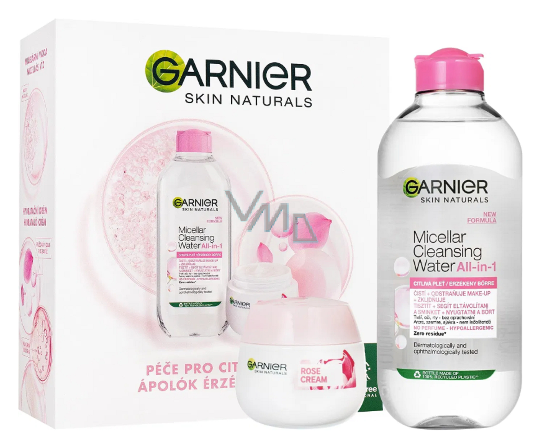 Garnier Skin Naturals Rose Cream Gesichtscreme 50 ml + Skin Naturals All-in-1 Mizellenwasser 400 ml, Kosmetikset für Frauen