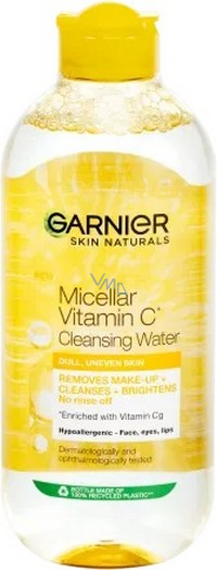 Garnier Skin Naturals micelární čisticí voda Vitamin C je vhodná zejména pro mdlou a unavenou pleť. Dokonale ji odlíčíte a vyčistíte nejen pleť, ale také oči a rty. Obsažené micely na sebe vážou nečistoty bez zbytečného tření a podráždění pleti. Složení je navíc obohaceno o vitamin C, který pleť rozjasní a dodá ji zdravější vzhled. Vaše pleť tak dostává novou svěžest a hebkost. Pro dokonalé a jemné odlíčení pleti je zde micelární čisticí voda Vitamin C od značky Garnier Skin Naturals!