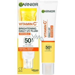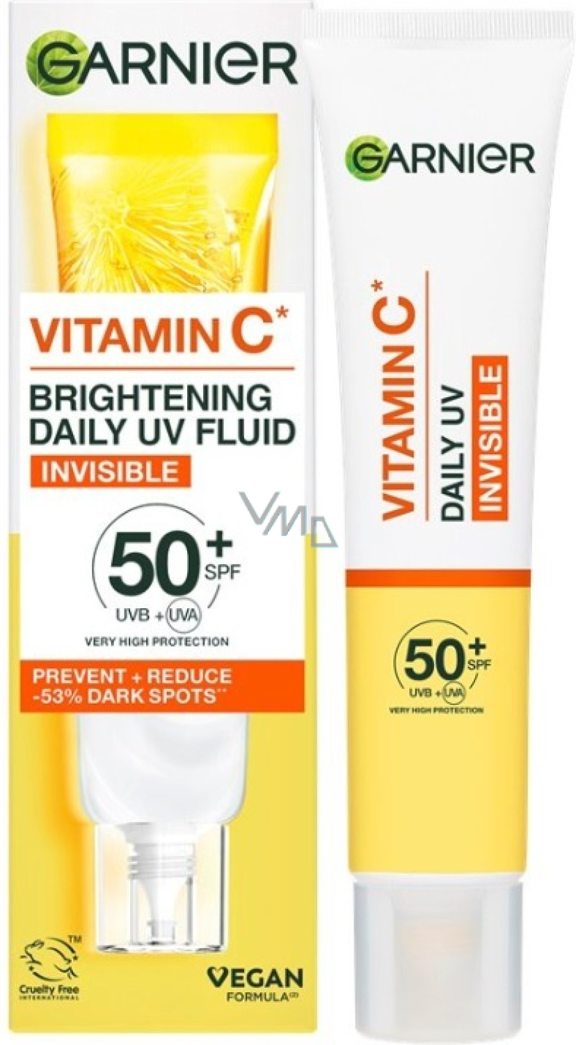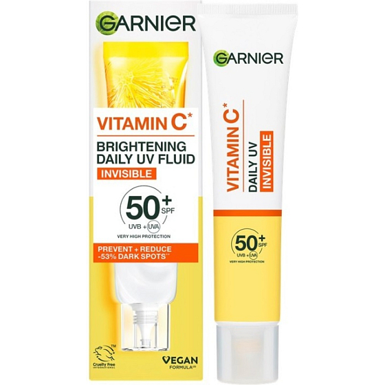 Garnier Skin Naturals Vitamin C SPF 50+, 40 ml. Tagesaufhellendes UV-Fluid mit Vitamin C. Bietet Schutz vor UVA, UVB und UV-Strahlung und schützt die Haut vor der Bildung von dunklen Flecken.