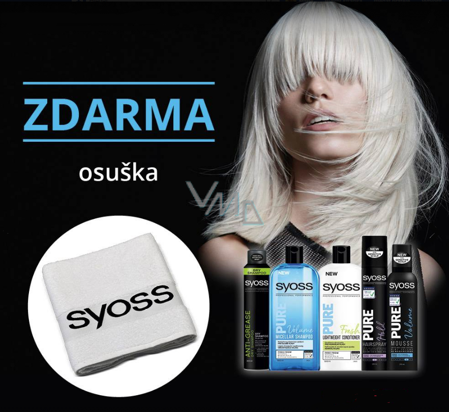 Nakupte jakékoliv 2 produkty Syoss a získáte osušku.