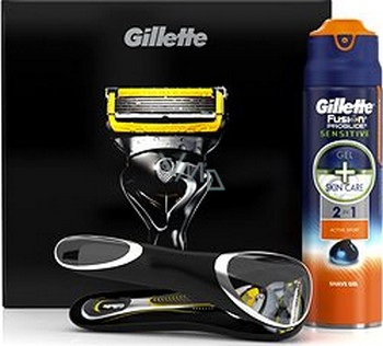 Gillette Fusion ProShield Rasierer + Sensitives Rasiergel 170 ml + Reiseetui, Kosmetikset, für Männer