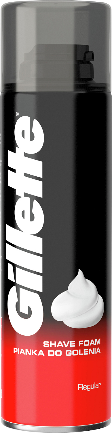 Durch seine cremige Konsistenz lässt es sich einfach auf der Haut verteilen. Der Rasierschaum Gillette Regular hinterlässt die Gesichtshaut frisch, hydratisiert und bietet eine angenehme und glatte Rasur.