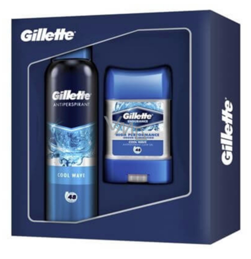 Dárková sada GILETTE Cool Wave Set potěší každého muže, který o sebe pečuje a dbá na upravený vzhled. Obsahuje přípravky pro každodenní péči, a to gelový antiperspirant a antiperspirant ve spreji. Gelový antiperspirant stick Gillette Endurance Cool Wave Clear Gel o objemu 70 ml díky technologii Triple Protection poskytuje trojnásobnou ochranu proti pocení a nepříjemnému tělesnému zápachu po dobu až 48 hodin. Pokožce dodává svěží vůni a dlouhotrvající pocit čistoty a sucha. Na oblečení nezanechává bílé stopy.