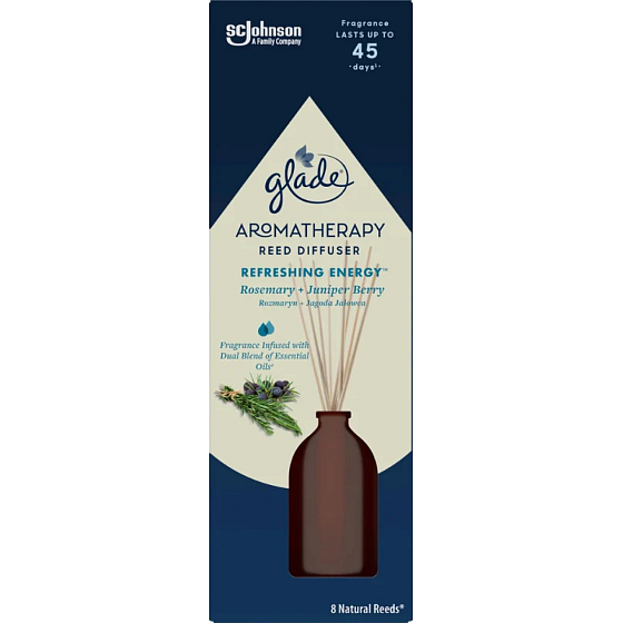 Die Duftstäbchen Glade Aromatherapy Reeds Refreshing Energy bringen sofortige Frische und Belebung der Sinne in Ihr Zuhause. Die Kombination natürlicher Essenzen schafft eine energetisierende und erfrischende Atmosphäre, die die Stimmung hebt und einen angenehmen Duft im gesamten Raum hinterlässt. Dank der praktischen Verpackung mit einem Volumen von 80 ml können Sie einen langanhaltenden aromatherapeutischen Effekt mühelos genießen.