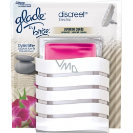 Glade by Brise Discreet Electric Japonská zahrada je elektrický osvěžovač vzduchu s diskrétním, moderním designem, který poskytuje dlouhodobou svěžest vašeho domova. Díky elegantnímu vzhledu splyne s vaším interiérem. Po zapojení odpařovače do el. zásuvky, náplň uvolňuje příjemnou vůni.