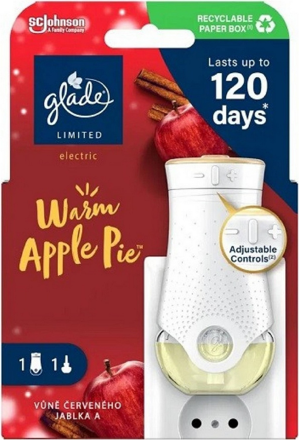 Glade Electric Warm Apple Pie ist eine Nachfüllung für den elektrischen Raumerfrischer, die einen warmen und festlichen Duft von frisch gebackenem Apfelkuchen in Ihr Zuhause bringt. Die Komposition aus süßen Äpfeln, Zimt, Muskatnuss und Nelken schafft eine gemütliche Atmosphäre, ideal für die Herbst- und Winterzeit.