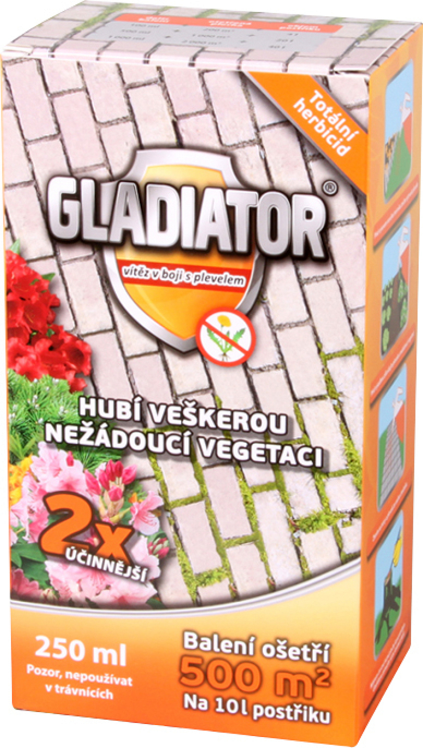 ist sehr umfangreich und einfach, auch für Anfänger im Gartenbau. Wir empfehlen es zur Unkrautbekämpfung im Beet vor der Anlage neuer Pflanzungen. Es dient zur Beseitigung von Unkraut und Moosen aus Pflastersteinen oder zur Entfernung von Gras, das unter dem Zaun in den Maschendraht wächst. Wenn Sie sich von Sträuchern und Aufwuchs befreien möchten, tragen Sie den unverdünnten Gladiator mit einem Pinsel auf frische Schnittstellen auf.