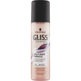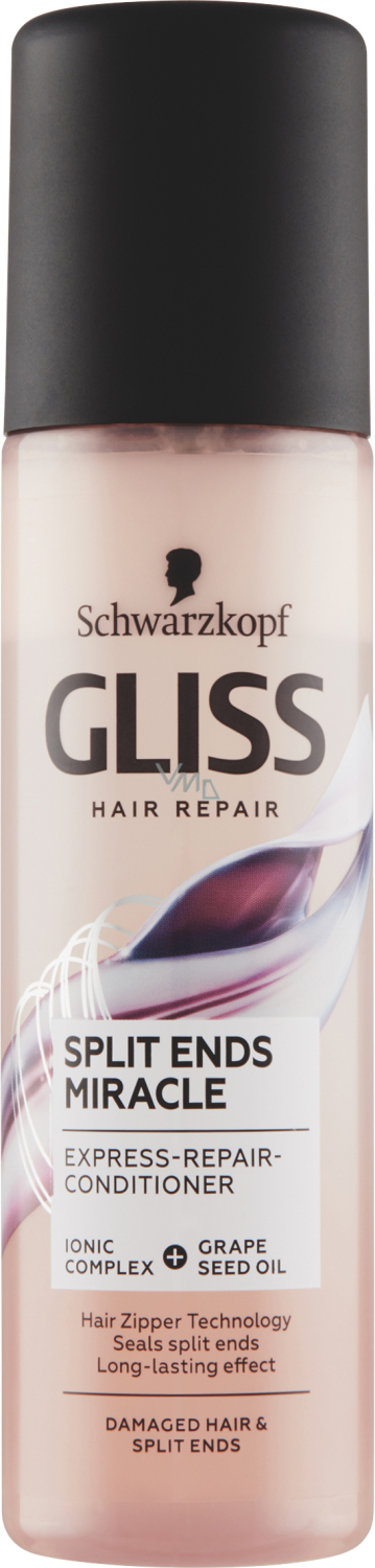 Gliss Split Ends Miracle Express Repair Balsam mit einem ionischen Komplex und Traubenkernöl für geschädigtes Haar und gespaltene Spitzen. Regeneriert geschädigte Haarfasern und versiegelt gespaltene Spitzen.