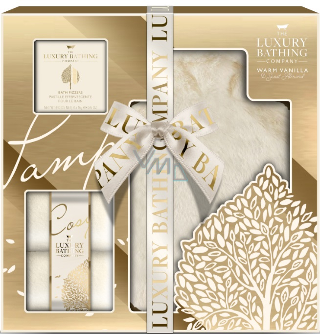 Dárková pečující sada zabalená ve zlatě obsahující nahřívací láhev, teplé ponožky a šumivé koule do koupele se skvěle postará i o vaši pokožku. Okouzlující kombinace hřejivé vanilky a sladké mandle je perfektním vyvážením jemných a sladkých tónů. Dopřejte si maximální požitek a přetvořte obyčejnou péči o tělo v luxusní rituál.