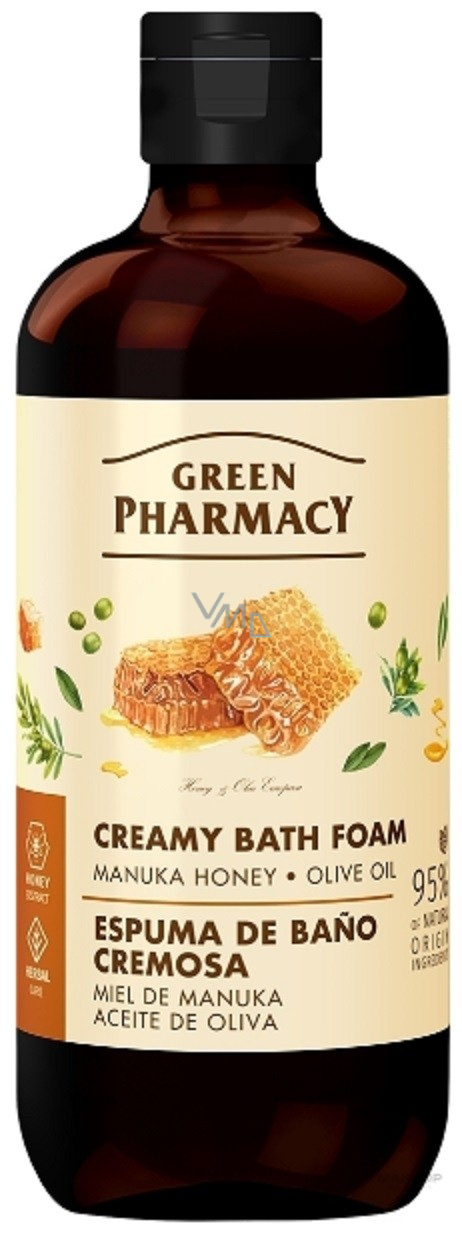Dopřejte si relaxaci a okamžiky pohody po celodenním shonu díky krémové pěně do koupele Manuka Honey & Olive Oil od Green Pharmacy. Rozmazlete své tělo a smysly a ponořte se do bohaté pěny s pronikavou, jemnou a rafinovanou vůní. Extrakt z medu Manuka má výživné, hydratační, ochranné a antibakteriální vlastnosti. Olivový olej intenzivně hydratuje pokožku a dodává jí živiny. Dělá pokožku jemnější a zvyšuje její pružnost. Pěna vám zajistí chvíle pohody a zasloužený relax po těžkém dnu.