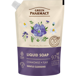 Die Nachfüllung flüssiger Seife Green Pharmacy Kamille und Leinsamen ist eine sanfte, beruhigende und feuchtigkeitsspendende Seife, die für die tägliche Pflege der Hände entwickelt wurde. Sie enthält Extrakt aus der Kamille, der natürliche antiseptische und beruhigende Eigenschaften hat, hilft, Irritationen zu lindern und die Regeneration der Haut zu unterstützen.