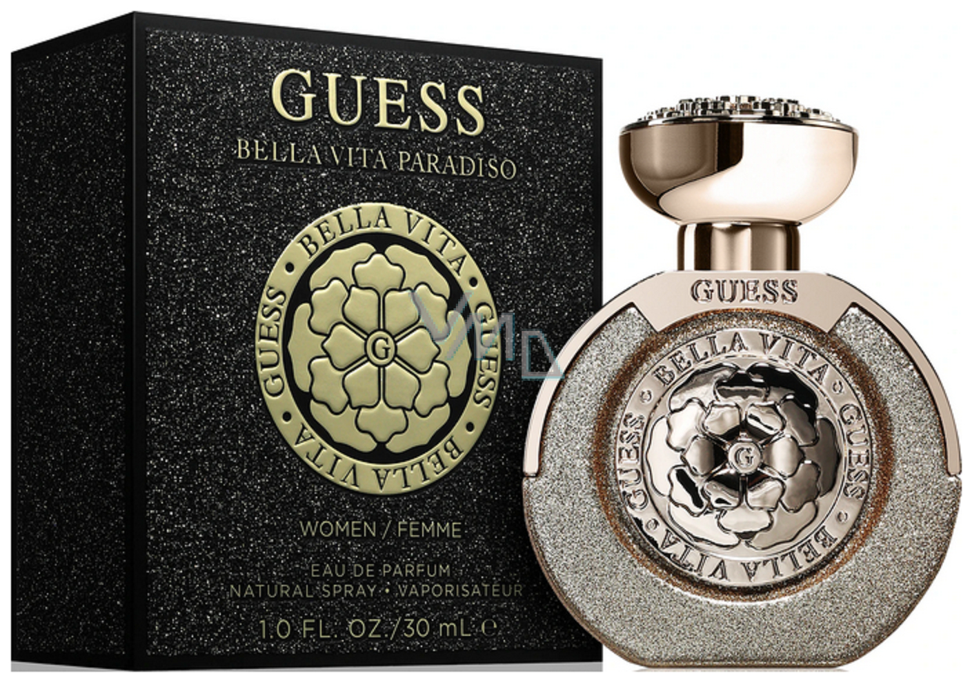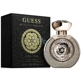 Der Damenduft Guess Bella Vita Paradiso erweitert die beliebte Duftreihe Bella Vita. Er feiert das Selbstvertrauen und die Sinnlichkeit der Frau mit seinem strahlend goldenen Glanz. Er ist inspiriert von der göttlichen Schönheit des schimmernden italienischen Paradieses. Sein Duft ist gourmande, blumig-holzig.