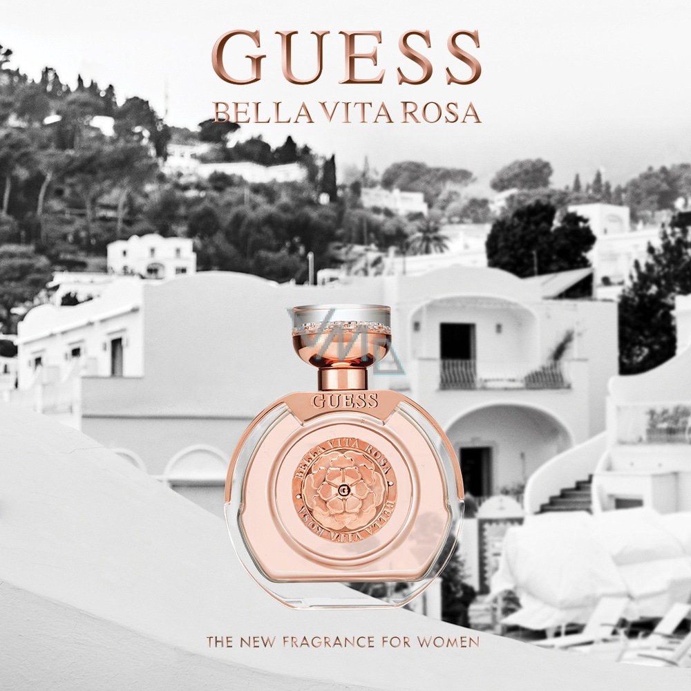 Den Duft Guess Bella Vita Rosa habe ich geschaffen, um die freudvolle Existenz der GUESS-Frau zu feiern, ihre Fähigkeit, das Leben durch die rosa Brille zu sehen und alles, was die Welt schön und positiv macht, zu erkennen”, sagt Parfümeurin Gabriela Chelariu.