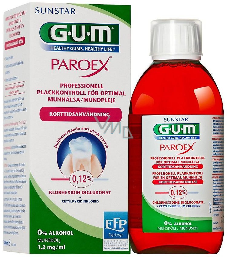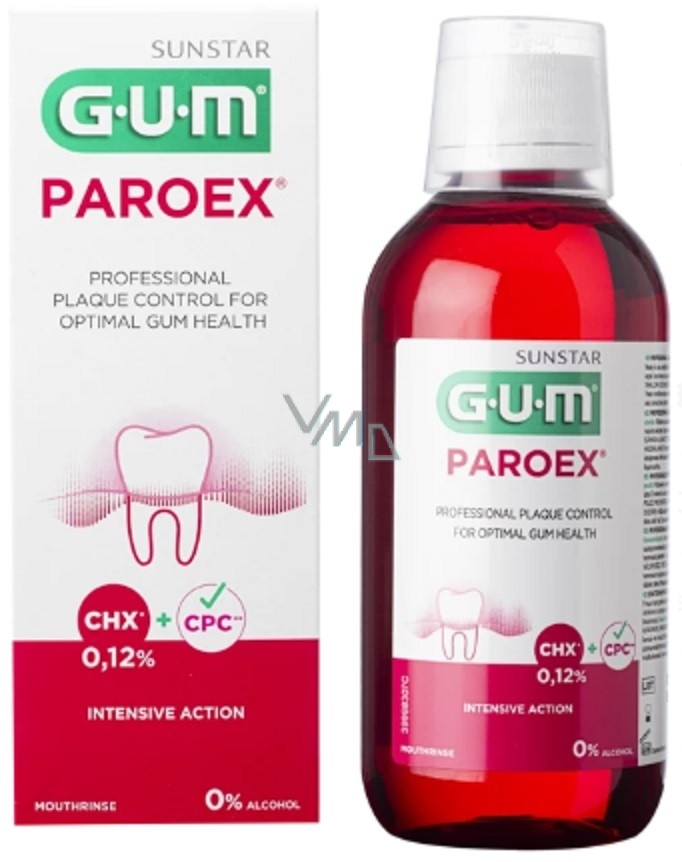 Ústní voda pro profesionální kontrolu plaku u nemocných dásní (gingivitida, parodontóza). Hodí se při chirurgických zákrocích či v péči o implantáty.