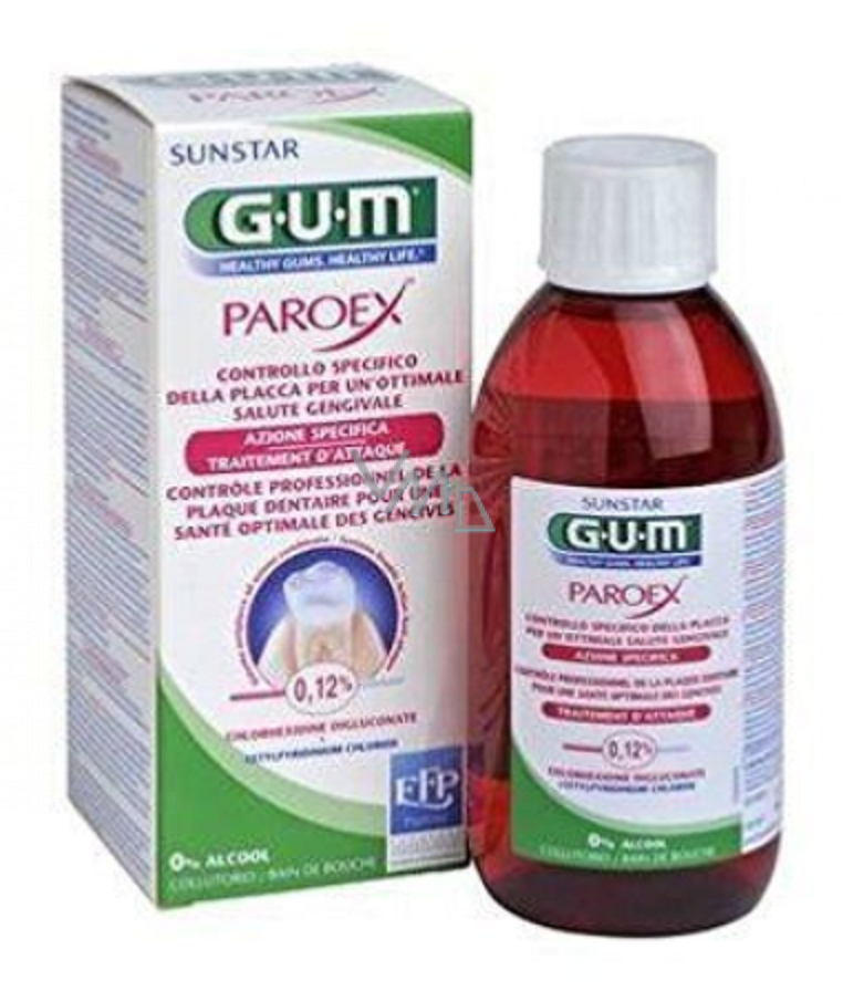 Gum Paroex Mundwasser, spülen CHX 0,12% professionelles Produkt zum Entfernen von Plaque aus Zahnfleisch, das von Entzündungen oder Parodontitis betroffen ist, 300 ml