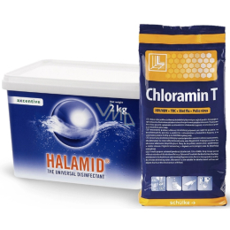 Chloramin T (neu unter dem Namen Halamid®) ist universell in verschiedenen Bereichen einsetzbar. Veterinärdesinfektion zur Gewährleistung eines hohen Sicherheitsniveaus. Auch zur Prävention und Bekämpfung von Infektionen und Epidemien in Schweine-, Geflügel- und anderen Betrieben. Fischzucht und Aquakultur zur Erhaltung einer gesunden Fisch- und Garnelenpopulation. Gesundheitswesen, Institutionen und allgemeine Hygiene zur Gewährleistung der Hygiene-Standards und zur Verringerung des Risikos der Verbreitung von Infektionen in der Öffentlichkeit oder bei Patienten. In Krisensituationen, Epidemien und Überschwemmungen als Produkt der ersten Wahl für sofortige und wirksame Desinfektionsmaßnahmen bei Interventionen von staatlichen Stellen, Rettungsdiensten oder privaten Unternehmen (z. B. SARS, Ebola, Vogelgrippe, Schweinegrippe usw.). Die Arbeitslösung des Chloramin T ist mit einer Reihe von Materialien kompatibel, z. B. Kunststoffen (PE, PP, PVC), Keramik, Glas. Nicht auf beschädigten Oberflächen verwenden, insbesondere nicht auf metallischen.