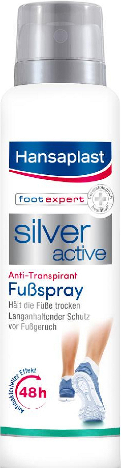 Hansaplast Fußspray SILVER ACTIVE gewährleistet aktiven Schutz gegen Schweiß, dank des Gehalts an Silberionen. Das Spray ist alkoholfrei, hat einen angenehmen und erfrischenden Duft und reizt die Haut nicht. Es kann auch in Schuhen angewendet werden.