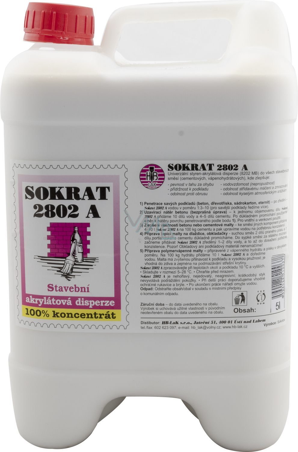 Hb-lak Sokrat 2802 A Bau-Dispersionsmittel wird als Bindemittel für die Herstellung von hochgefüllten Fassaden- und Innenanstrichen, als Bindemittel für die Herstellung von Dispersionsputzen, als Imprägnierungs- und Saugmittel für mineralische Untergründe oder staubfreie Behandlungen von Baustellen verwendet. Außerdem wird es als Bindekomponente für abschließende Anstriche auf Beton eingesetzt und auch als Zusatz zu Beton und Mörtel zur Verklebung von Fliesen.