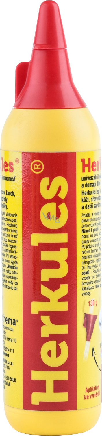 Universelles Dispersionskleber für Haushalt, Schulen, Büros und Heimwerkstätten. Herkules klebt Papier, Holz, Kork, Leder, Holzfaserstoffe und andere saugfähige Materialien. Besonders geeignet zum Kleben von Fotos, Verleimen von Holzmöbeln, Lederinnensohlen usw.