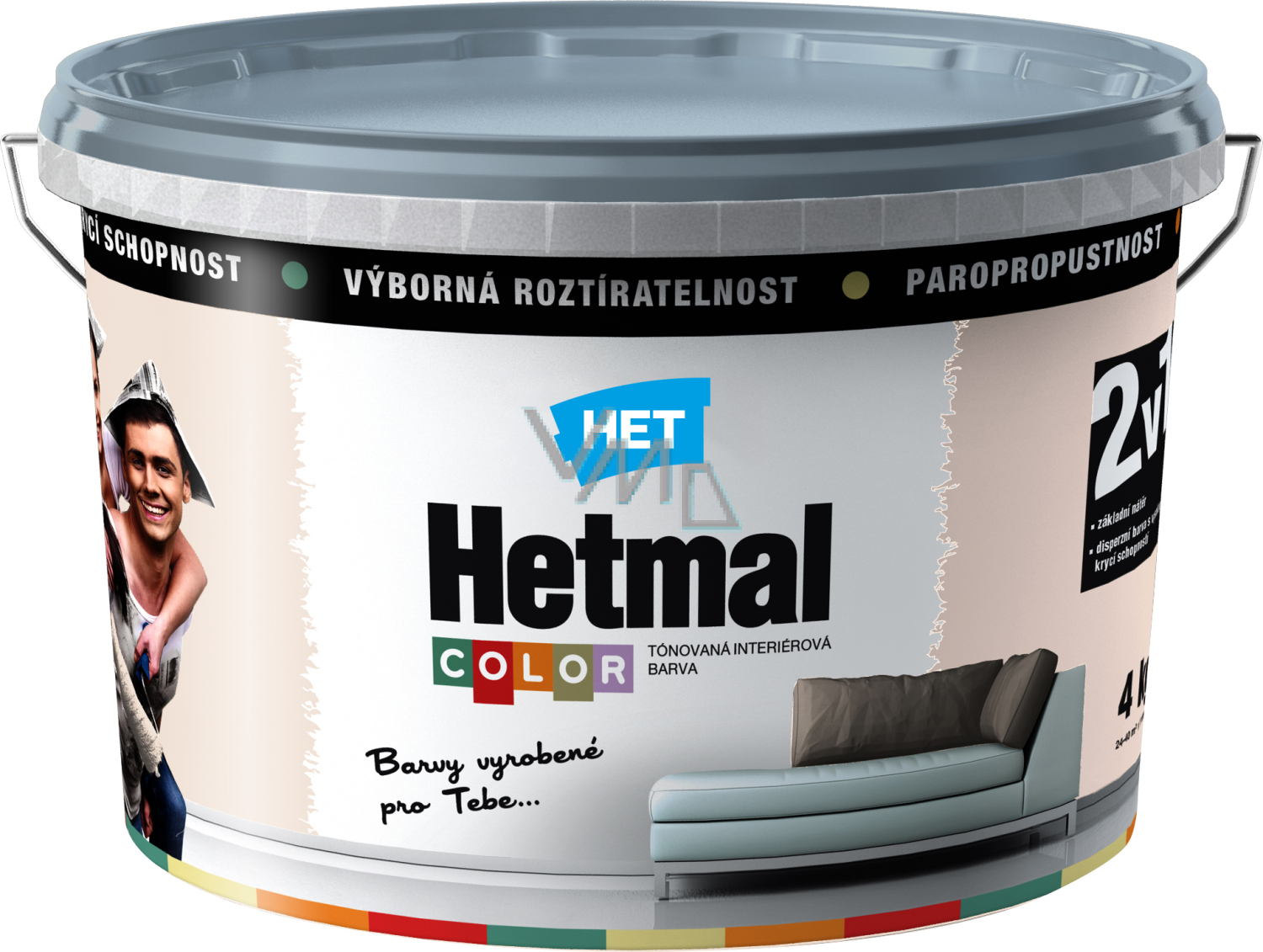 Innendispersion weiße Deckfarbe Het Hetmal Plus mit hoher Deckkraft - empfohlen für kommerzielle und Wohnräume, Büros, Schulen, Flure, industrielle Anwendungen. Het Hetmal Plus eignet sich für Innenanstriche von Wänden und Decken, Kalk- und Kalkzementputzen, Betonpanelen und Monolithen, dafür vorgesehenen Papiertapeten usw. Die Farbe ist geeignet zum Überstreichen alter tragfähiger Schichten von Innenfarben. Das Produkt erfüllt die Anforderungen für Beschichtungen von Oberflächen, die möglicherweise indirektem und direktem Kontakt mit Lebensmitteln kommen. Der Anstrich erzeugt eine matte, dampfdurchlässige Oberfläche, die gegenüber der normalen Luftfeuchtigkeit in Räumen beständig ist und unter trockenen Bedingungen abriebfest ist. Die beschichtete Oberfläche darf nicht dauerhaft mit Wasser in Kontakt kommen und darf nicht kondenstierender Feuchtigkeit ausgesetzt werden. Der getrocknete Anstrich hält kurzfristig Temperaturen von etwa 70 °C stand. Die Farbe Het Hetmal Plus eignet sich für die Ausmalung von Wohn- und Gewerberäumen, Fluren, Büros, Schulen, Industriegebieten usw. Erhöhte Weißheit 93 % (MgO), hohe Ergiebigkeit, matte Optik, Widerstandsfähigkeit gegen Abrieb unter trockenen Bedingungen, Dampfdurchlässigkeit, einfache Farbtonanpassung.
